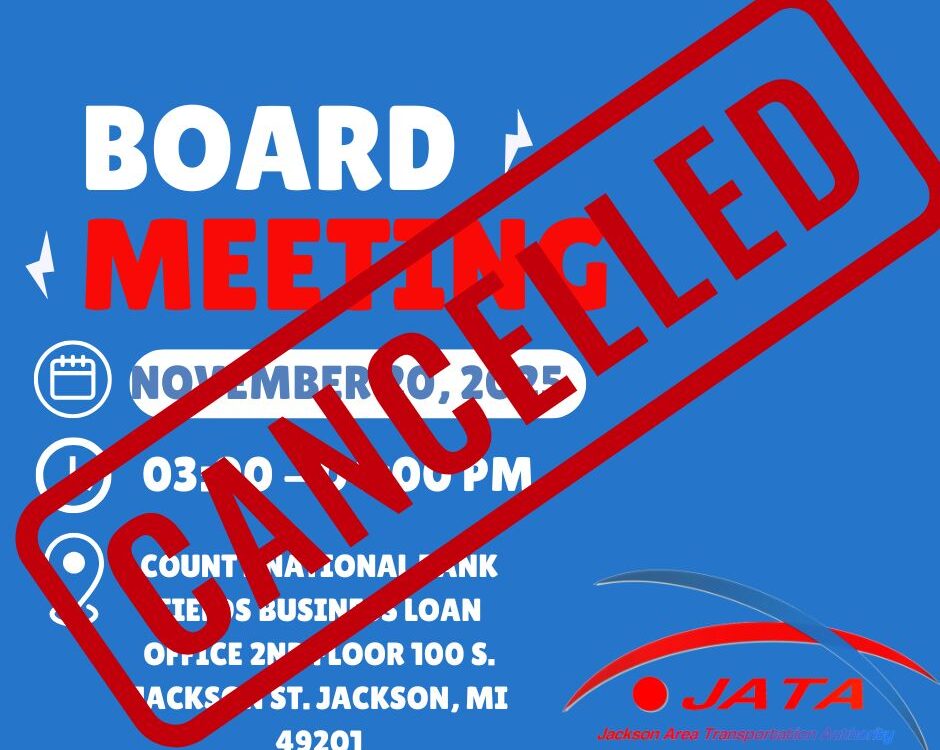 The Jackson Area Transportation Authority Board Meeting scheduled for today, August 28, 2025, has been cancelled due to lack of quorum. We sincerely apologize for the late notice and any inconvenience this may cause. Thank you for your understanding.